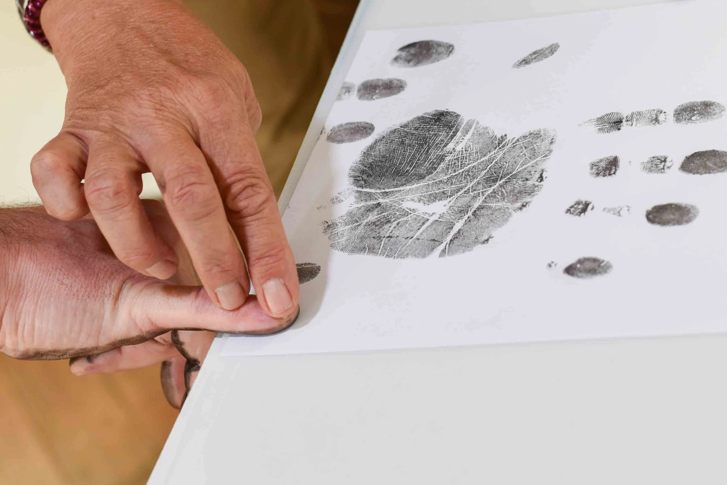 Nicht nur die Handflächen machen einen informativen Abdruck. Auch die einzelnen Fingerabdrücke.